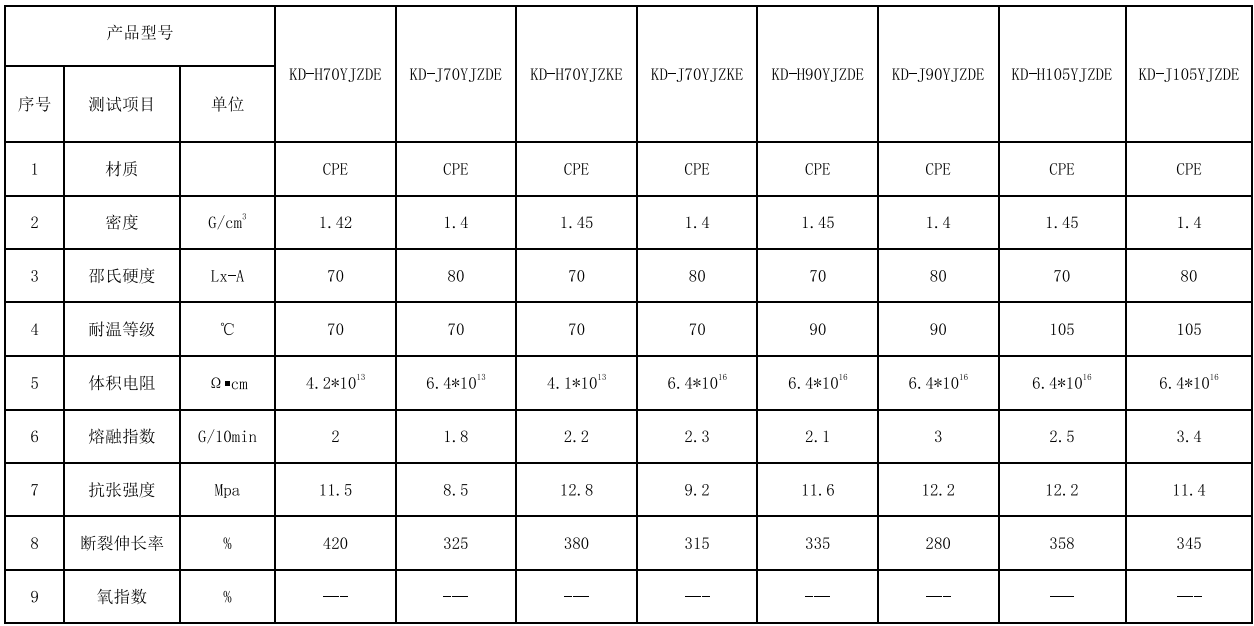 - 材料名称: 70°C辐照交联橡 胶绝缘料
