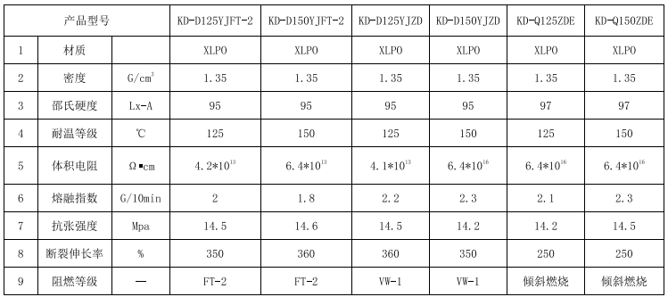 - 材料名称: 125C辐照交联低烟无卤阻燃聚烯烃绝缘材料