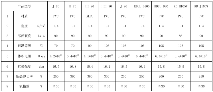 - 用途: 仪表通讯电缆、0.6/1KV 及以下电缆的绝缘层